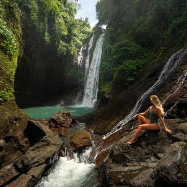 A breathtaking waterfall in North Bali known for its turquoise pools, cliff-jumping spots, and natural slide waterfalls—perfect for adventurous travelers seeking excitement and beautiful scenery.