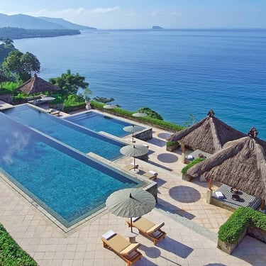 A Serene Sanctuary on Bali’s Eastern Coast. Perched gracefully between the sacred Mount Agung and the shimmering Lombok Strait, Amankila Manggis stands as one of Bali’s most tranquil and luxurious seaside retreats. Meaning “peaceful hill” in Sanskrit, Amankila truly lives up to its name, offering a haven of elegance, seclusion, and spiritual calm.