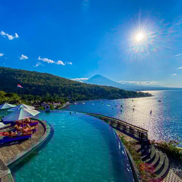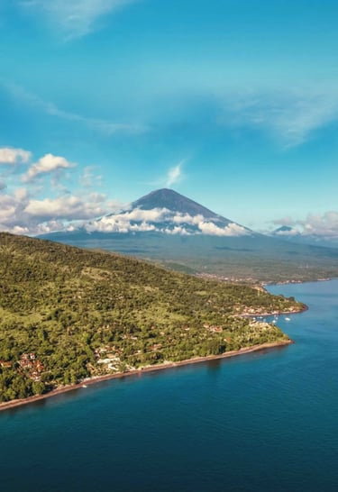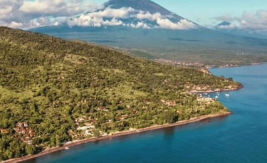 A laid back coastal destination in Karangasem, East Bali, known for its black sand beaches, vibrant coral reefs, traditional fishing villages, and stunning views of Mount Agung.