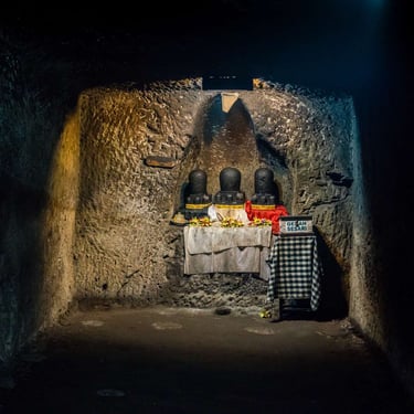 Stepping into the narrow, dimly lit cave, you’ll immediately feel the shift in energy. The scent of incense fills the air, and small oil lamps flicker softly along the moss covered walls. Inside, two small shrines stand one dedicated to Shiva and another to Ganesha, offering visitors a rare glimpse into the spiritual devotion of ancient Bali.